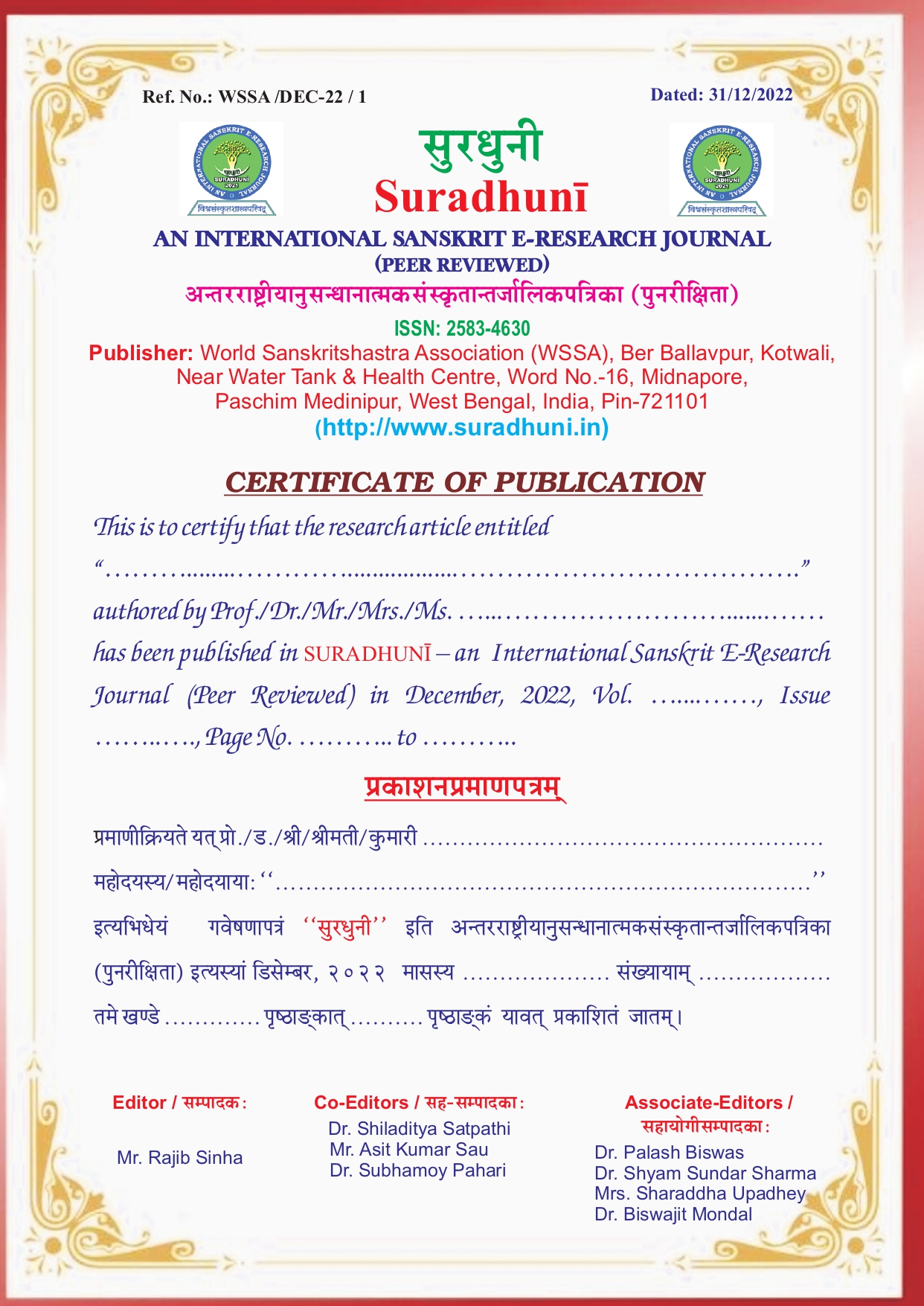 Dear authors are informed that an E-certificate will be provided free of cost one month after the successful publication of their submitted articles. Authors will be able to download the free E-certificate after publishing their manuscript by following the guidelines below.